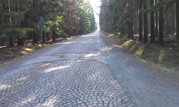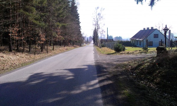 do Zaječova po okraji prostoru ,nádherným houpavým stoupáním kolem křížku