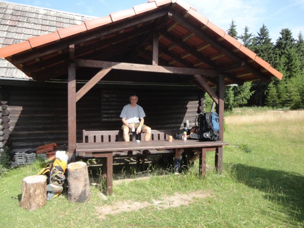 Po probuzení jsme zabalili věci a přešli z Beranu na k křižovatku u Bílého křížku nad Zaječov kde nás čekalo 4 hodinové válení se v lese ve stínu a čekání na Libora který se k nám připojil a přivezl doplnění rychle mizících tekutin . Při krátké bouřce ( zatím poslední déšť který jsem dodnes viděl ) nám posloužil jako úkryt strážní domek . Následoval výstup na Hejlák kolem všech 3 bunkrů a nocování v lesíku nedaleko od horního bunkru .